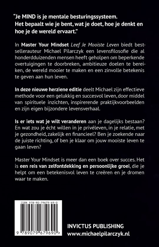 Waarom doe je wat je doet? Dat is de kernvraag in Master Your Mindset. Michael Pilarczyk deelt in dit boek zijn persoonlijke verhaal over vallen en opstaan, gecombineerd met diepgaande psychologische inzichten en spirituele wijsheid. Het boek is speciaal geschreven voor de nuchtere lezer die op zoek is naar concrete handvatten voor verandering.